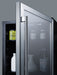 Sized with a convenient 24" footprint, the AL57G is just 32" high to fit under lower counters complying with ADA guidelines for accessibility in commercial settings. The fully finished black cabinet allows freestanding use, while the front-breathing system also allows this unit to be built-in with minimum clearance. This unit has a user-reversible double pane tempered glass door with attractive stainless steel trim. A stainless steel handle completes the look and a factory installed lock in the kickplate offers additional security. The flush back design helps to make cleaning easier, while the right angle cord offers added space savings.