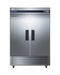 The ARS49ML features a durable stainless steel cabinet and interior, with a sealed back for easier cleanup. We include a set of casters (2 locking) for optional installation. A factory-installed lock offers added security, with two keys included for your facility. Magnetic door gaskets ensure a strong seal. The two doors are self-closing to help protect contents, but will remain open at 90º for easier loading.