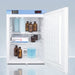 The 2.4 cu.ft. interior capacity includes wire shelving for optimum circulation, with one center fixed shelf to keep the temperature probe in place anda removable half shelf that can be positioned above the compressor step. This unit has a flat door liner as recommended by the CDC to protect stored items from too much exposure to ambient temperature when the door is opened. An internal fan ensures the interior is evenly cooled from top to bottom.