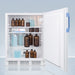 As recommended by the CDC, VFC and VFA programs, the FF7LWBIMED2ADA is equipped with a NIST calibrated thermometer that displays the current, minimum, and maximum temperatures to the nearest tenth of a degree with a readout viewable in Celsius or Fahrenheit. Each FF7LWBIMED2ADA ships with a certificate of calibration for your records. The thermometer includes an audible alarm to warn users if the interior has gone out of the programmed temperature range. The buffered temperature probe is encased in a glycol-filled bottle and secured inside the center shelf to best simulate the temperature of other stored contents, resulting in the utmost accuracy for temperature reporting. We include a pre-installed 3/8" probe hole for users who wish to install additional monitoring equipment.