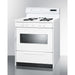 The WNM2307KW is a gas range sized at 30" wide, with a generous 3.7 cu.ft oven interior that can accommodate large trays. Two adjustable oven racks are included. An oven window and on/off interior light allow you to easily keep watch over your cooking. The broiler is located below the oven in a drop-down compartment. Four open 9000 BTU gas burners accommodate most of your stovetop heating needs, with upfront push-to-turn knobs that let you adjust your cooking without reaching over hot burners. This unit utilizes an electronic ignition system for added safety.