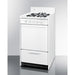 The WNM1107 is an apartment-sized gas range sized at just 20" wide, with a generous 2.46 cu.ft oven interior that can accommodate large trays. Two adjustable oven racks are included. The broiler is located below the oven in a drop-down compartment. Four open 9000 BTU gas burners accommodate most of your stovetop heating needs, with upfront push-to-turn knobs that let you adjust your cooking without reaching over hot burners. This unit utilizes an electronic ignition system for added safety.