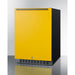 Model AL54Y is a 24" wide refrigerator sized at just 32" high for easy installation under lower ADA compliant counters. The front-breathing cooling system allows built-in use, while the fully finished black cabinet also enables freestanding applications. The door comes in a bright saffron gold hue, with a sleek horizontally mounted stainless steel handle and matching stainless steel kickplate to complete the unique look.