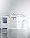 Summit's line of all-in-one combination kitchenettes brings complete kitchen convenience in a slim-fitting design. These units come fully featured with everything you need for the home foodservice experience, including a refrigerator with a freezer compartment, 4-burner smooth top range with oven, sink with faucet, cutlery bin with a removable cutting board cover, and storage cabinet for dry goods.