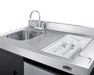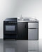Summit's line of all-in-one combination kitchenettes brings complete kitchen convenience in a slim-fitting design. These units come fully featured with everything you need for the home foodservice experience, including a refrigerator with a freezer compartment, 4-burner smooth top range with oven, sink with faucet, cutlery bin with a removable cutting board cover, and storage cabinet for dry goods.
