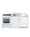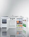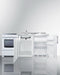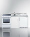 Summit's line of all-in-one combination kitchenettes brings complete kitchen convenience in a slim-fitting design. These units come fully featured with everything you need for the home foodservice experience, including a refrigerator with a freezer compartment, 4-burner smooth top range with oven, sink with faucet, cutlery bin with a removable cutting board cover, and storage cabinet for dry goods.